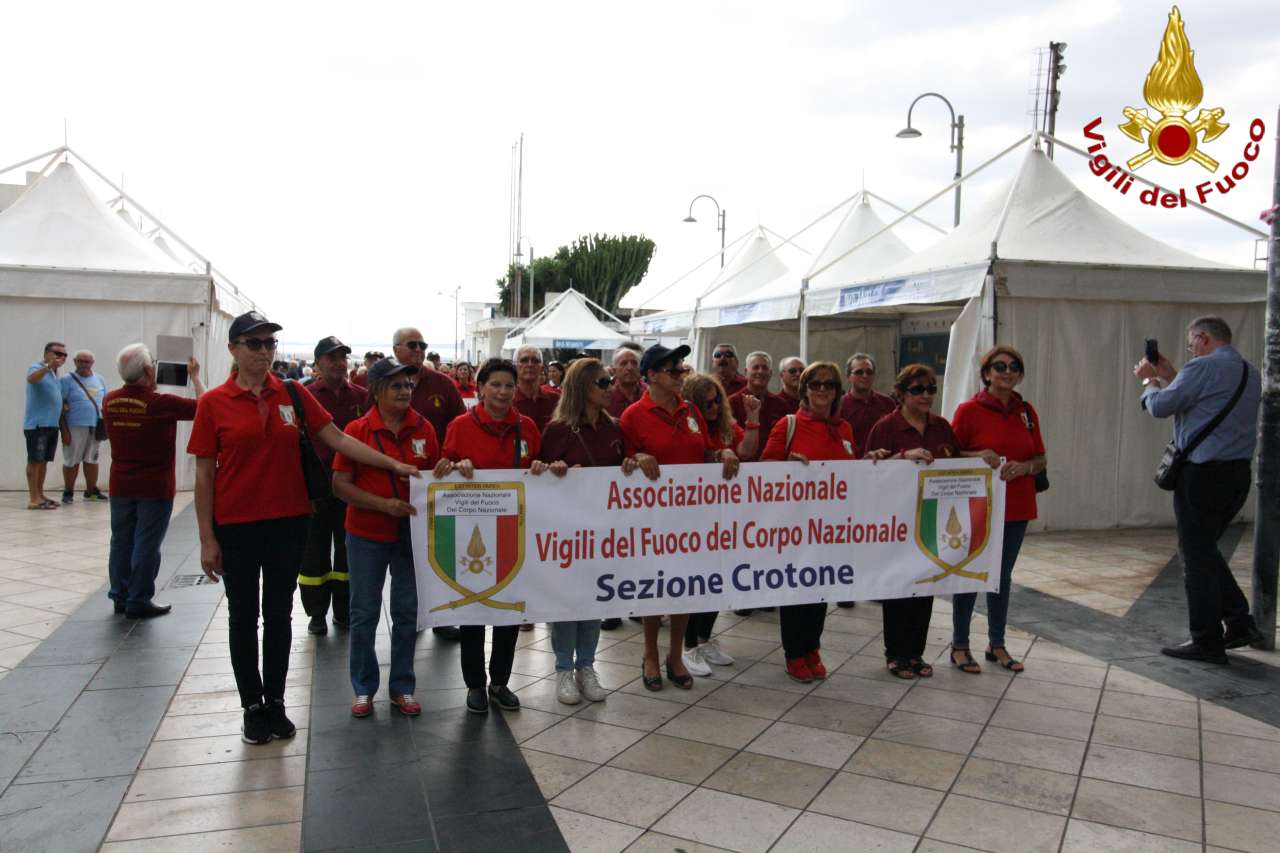Si è concluso oggi il IV raduno Regionale dell’Associazione Vigili del fuoco, organizzato dalla Sezione di Crotone. Una tre giorni intensa e piena di appuntamenti, che ha visto gli ospiti con famiglie a seguito protagonisti di visite guidate in tutto il territorio della provincia. Un gran mumero di pompieri arrivati da tutta la Calabria, che ha potuto godere grazie a delle visite guidate delle bellezze del territorio: da Le Castella, al promontorio di Hera Lacinia, al centro storico di Crotone, al museo e tutta la costa. Tre giorni che si concludono con l’appuntamento in piazza Rino Gaetano, con i relativi striscioni di ogni sezione, il saluto dell’Amministrazione Comunale, con l’Assessore Giuseppe Frisenda, che ha ringraziato i Vigili del Fuoco, e subito dopo una sfilata fino ad arrivare al Duomo dove si è celebrata una santa messa officiata da Don Ezio Limina. Dopo il pranzo di tenutosi al villaggio Casarossa, il saluto conclusivo degli organizzatori, alla presenza del Coordinatore Regionale Domenico Attisani e del Comandante Provinciale del Comando di Crotone Pier Nicola Dadone e del Comandante del Comando Provinciale di Catanzaro Mario Falbo.