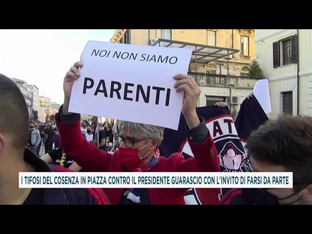 I TIFOSI DEL COSENZA IN PIAZZA CONTRO IL PRESIDENTE GUARASCIO CON...