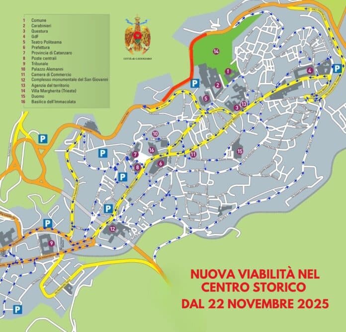Partiranno sabato prossimo, dalle 7.30, le modifiche alla viabilità nel centro di Catanzaro annunciate nei giorni scorsi. Per consentire la realizzazione di lavori di mitigazione del rischio idrogeologico lungo viale dei Normanni, infatti, sarà invertito il senso di marcia su Corso Mazzini, la strada principale della città. Questo comporterà anche una serie di modifiche ed inversioni anche sulle altre strade del centro. Corso Mazzini, dunque, sarà percorribile sulla direzione sud-nord da Bellavista fino al Cavatore. Gli agenti della Polizia locale presidieranno i punti principali. Chi proviene da sud può percorrere Viale Dei Normanni – Via Nuova – Via De Seta e raggiungere Corso Mazzini; per chi proviene da nord, giunti a Piazza Matteotti si avranno nuovi transiti, invertendo il senso di marcia di Via Poerio, Via Raffaelli, Via Sensales, Via Gironda Veraldi; chi proviene dalla rotatoria Gualtieri può salire per Via Antonio Pelaggi (la rampa dell’Ospedale Vecchio) e raggiungere via Poerio.