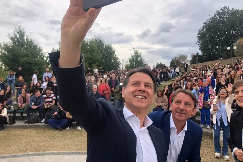 Conte ha fatto un selfie con gli studenti e il candidato presidente della Regione del campo progressista Pasquale Tricico che ha inviato a Marco Croatti, senatore del Movimento sulla Flottiglia, come segno di vicinanza.