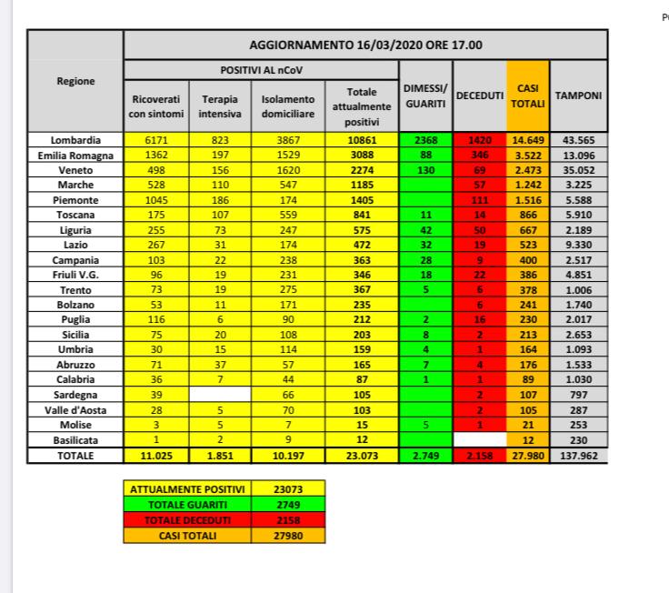 Questo il link del bollettino delle 17 di oggi del Ministero della Sanità: