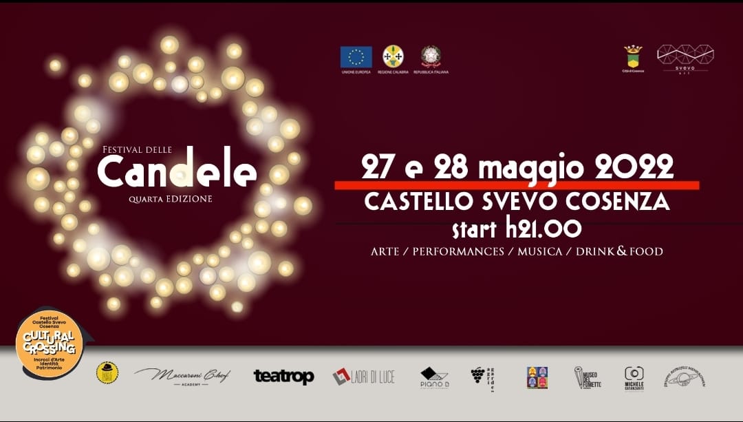 Il “Festival delle Candele”, giunto alla quarta edizione, è ideato e diretto da Pietro Pietramala e organizzato da Svevo srl, con il patrocinio del Comune di Cosenza, nei giorni 27 e 28 maggio al Castello Svevo di Cosenza. La manifestazione rientra nel progetto Cultural Crossing. Incroci d’Arte, Identità e Patrimonio finanziato dalla Regione Calabria per le attività di animazione dei beni culturali (PAC CALABRIA 2007/2013). Le luci artificiali verranno spente e la struttura sarà illuminata da migliaia di candele ad esaltare le antiche architetture che, per l’occasione, ospiteranno attività artistico-culturali e di intrattenimento.
