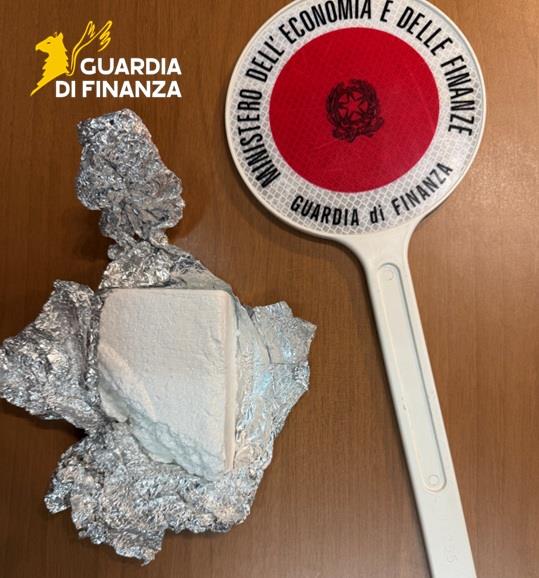 A seguito di perquisizione personale e del mezzo, è stato rinvenuto, all’interno del marsupio del conducente, 1 panetto avvolto da carta argentata contenente una sostanza di colore bianco, il cui esame speditivo attraverso il drop test ha dato esito positivo in quanto sostanza stupefacente di tipo cocaina.