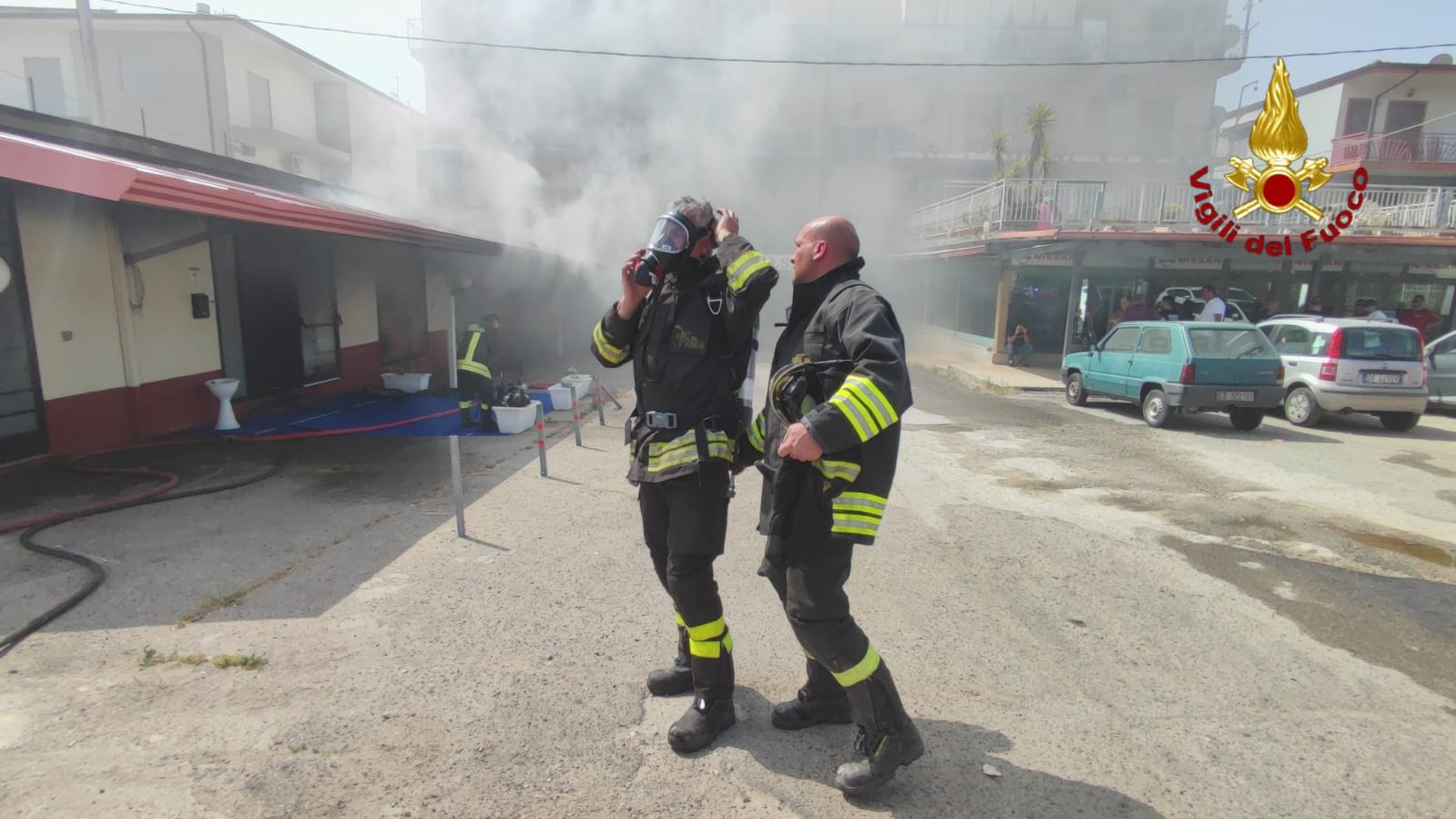 Incendio in magazzini commerciali e privati lungo la SS106 a Crotone. Da stamattina squadre dei vigili del fuoco del Comando Provinciale di Crotone sono impegnate nel domare le fiamme in località Poggio Pudano. Due squadre con autopompa serbatoio ed autobotte continuano a lavorare sull’incendio. Interessati dalle fiamme un ufficio di una attività autonoleggio ed un deposito ad uso privato. Adiacente un’officina meccanica con all’interno autovetture ed un garage privato e sulla parte superiore appartamenti adibiti a civili abitazioni. L’intervento dei vigili del fuoco ha scongiurato il propagarsi delle fiamme agli appartamenti ed all’officina, il denso fumo nero ha interessato anche la ss 106 senza gravi problemi di viabilità. Sul posto la polizia stradale ed una volante della questura per gli adempimenti di competenza.