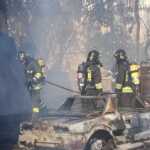 Le fiamme hanno coinvolto alcune vetture un motocarro, alcune cataste di legno e materiali di vario genere. Il tempestivo intervento di più squadre dei vigili del fuoco hanno impedito il propagarsi delle fiamme all’interno del capannone. Sul posto i vigili hanno fatto il via vai con due autobotti per rifornire di acqua i mezzi impiegati nelle operazioni di spegnimento. Per le operazioni di smassamento e bonifica i vigili del fuoco hanno altresì adoperato un mezzo movimento terra. Sul posto per i rilievi del caso anche Polizia e Carabinieri. Non risultano danni a persone.