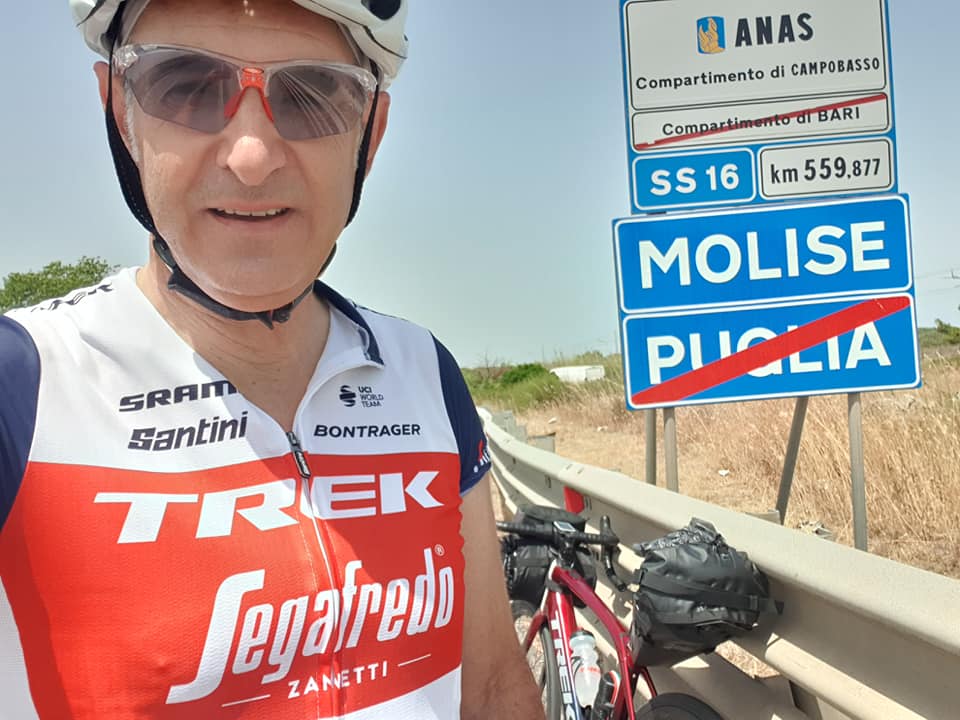 “È quando si finisce di sognare che la vita si spegne; È quando si finisce di credere in se stessi che anche la tua anima si spegne; È quando non credi più nelle forze del tuo fisico che anche il corpo muore. E con te muore la tua anima…”. È quanto scrive sul suo profilo Salvatore Colosimo dopo aver compito un’altra grande impresa: dalla Calabria al Veneto, da Cosenza a Noale (VE), in bicicletta per riabbracciare sua figlia Marilina. La pandemia, il lockdown e la folle idea di un lungo viaggio in bici, in solitaria, per rivedere sua figlia dopo un anno. L’ennesima sfida di un ciclo-amatore che ha percorso i 1092 km in quattro tappe: 1^ Tappa Cosenza-Bitonto (268 km); 2^ Tappa Bitonto-Ortona (289 km); 3^ Tappa Ortona-Cattolica (276 km) e 4^ Tappa Cattolica-Venezia Noale (262 km). “Per fine giugno sarei dovuto salire in Veneto per raggiungere mia figlia che non vedevo da quasi un anno”, racconta Salvatore. “Lei, Marilina, calabrese emigrante, lavora da insegnante in provincia di Venezia, ed anche per via della seconda e terza ondata di Covid, non abbiamo avuto la possibilità di poterci vedere. Da questa motivazione ha preso spunto la mia idea, o scommessa, o sogno nel cassetto, di poterla raggiungere in sella della mia bici”. Salvatore che negli anni scorsi è stato tra gli ideatori del “Giro della Luce illumina le strade di Denis Bergamini” nel 2015, che ha “domato” oltre 50 grandi montagne del Giro d’Italia e del Tour de France e che nello scorso mese di maggio è sbarcato in Sicilia per percorrere le strade della memoria in onore di Giovanni Falcone. Un altro sogno realizzato, un’altra sfida vinta in attesa già della prossima, certi che il ciclista cosentino sta già lavorando ad un altro progetto su due ruote.