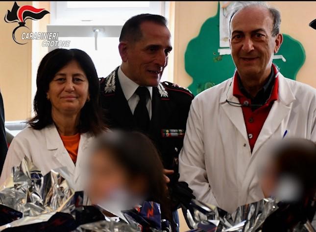 Nella mattinata del 15 aprile il Comandante Provinciale dei Carabinieri di Crotone, Colonnello Raffaele GIOVINAZZO, d’intesa con il Commissario Straordinario dell’Azienda Sanitaria Provinciale di Crotone, Dott.ssa Monica CALAMAI, ha fatto visita ai piccoli degenti del Reparto di Pediatria dell’Ospedale Civile “San Giovanni di Dio” del Capoluogo, portando loro un dono, quale tangibile segno della vicinanza dell’Istituzione, e raccogliendo sia l’affetto che la gratitudine dei piccoli e delle loro famiglie.