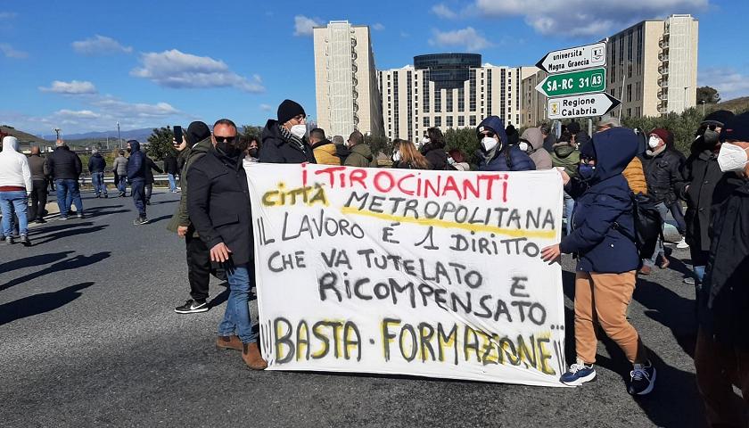 Manifestazione di protesta a Catanzaro dei precari appartenenti al bacino dei tirocinanti, che hanno bloccato le strade di ingresso alla Cittadella regionale chiedendo di incontrare il presidente della Regione Roberto Occhiuto per determinare lo sblocco della loro vertenza. Alla base della mobilitazione, promossa dal sindacato autonomo Usb, c’è la richiesta di contrattualizzazione dei tirocinanti impegnati da circa dieci anni all’interno di amministrazioni pubbliche come comuni ed altri enti della regione. I manifestanti, presenti con bandiere e striscioni come è già più volte accaduto in passato, si sono ritrovati nel parcheggio e poi hanno sfilato sulla strada antistante l’ingresso del palazzo della Regione Calabria. “Chiediamo la stabilizzazione dei tirocinanti calabresi – ha detto uno dei lavoratori proveniente da un comune del crotonese – padri e madri di famiglia che da dieci anni lavorano nella più totale precarietà all’interno dei comuni della regione senza uno straccio di contratto e di sicurezza sul futuro”. “Il presidente Occhiuto – ha aggiunto un altro lavoratore – si deve assumere le sue responsabilità e deve dare risposte così come aveva detto di fare durante la campagna elettorale”. A stretto giro è arrivata la risposta del presidente della Regione. “Mentre mi sto occupando della rete oncologica regionale, che purtroppo va rilanciata, dei presidi sanitari da mettere sul nostro territorio e di tanti altri dossier – afferma Occhiuto – mi chiama la Digos dicendomi che c’è un sindacato che pretende che li incontri con i lavoratori, per poter dire poi agli stessi lavoratori, che siccome hanno bloccato le strade per l’accesso agli uffici della Regione, hanno vinto avendo costretto la Regione a incontrarli. Io sono sempre disponibile a incontrare i sindacati e i lavoratori: l’ho sempre fatto. Li incontrerò quando sarà possibile farlo ma non li incontro se lo chiedono con prepotenza. La prepotenza non vince, nei confronti del mio governo regionale non vince”.