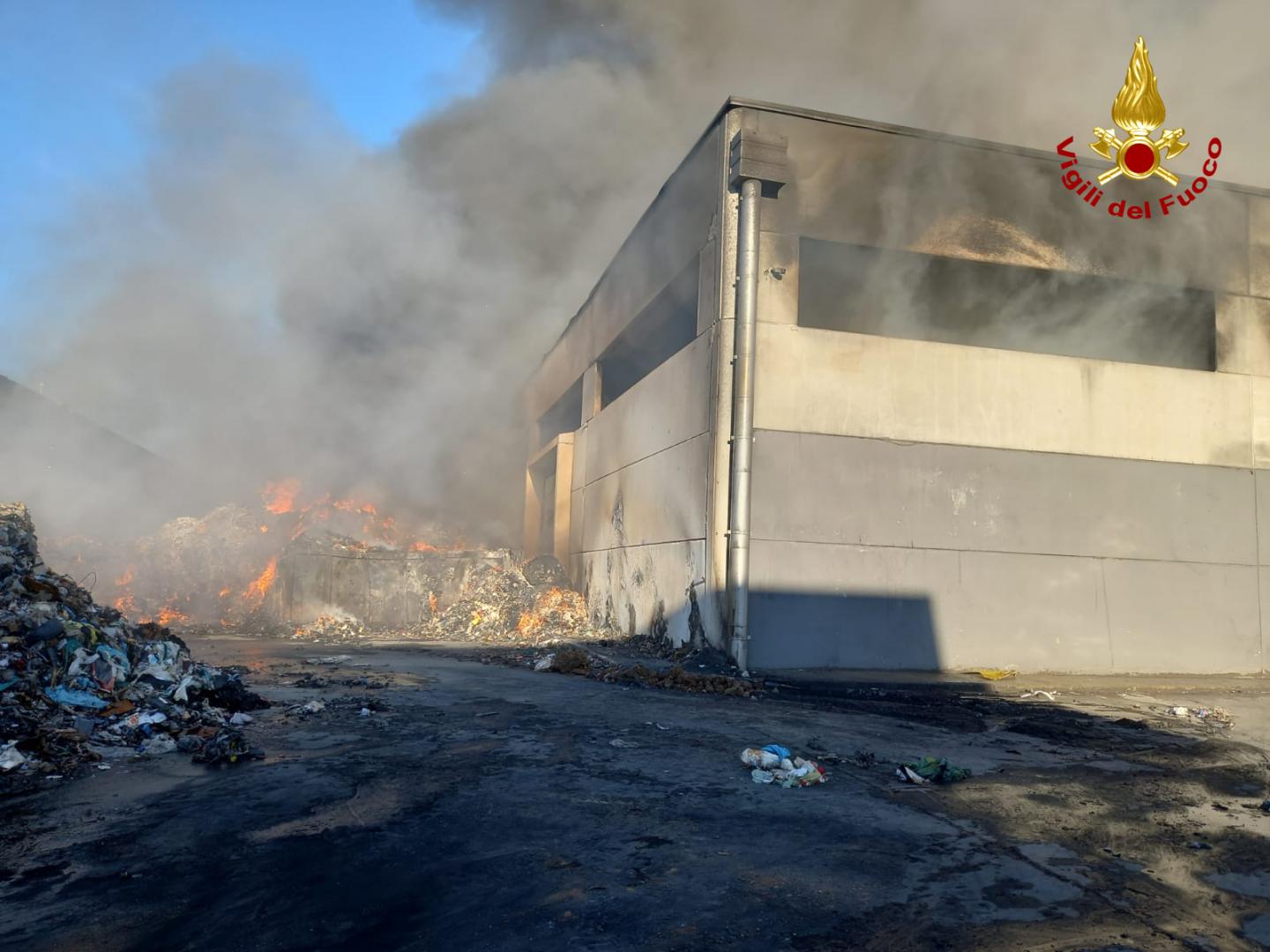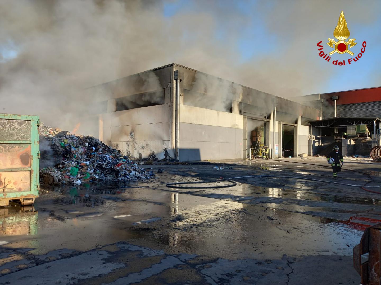 Un incendio ha interessato stanotte il capannone di Calabra Maceri in contrada Lecco a Rende. L’incendio ha interessato cumuli di rifiuti di vario genere situati all’interno della struttura in cemento armato nonché attrezzature e macchinari. Le fiamme hanno coinvolto anche numerose balle di plastica e carta situate nel piazzale adiacente. Poco dopo mezzanotte l’allarme con l’intervento delle squadre dei vigili del fuoco del comando di Cosenza sede centrale e distaccamento di Rende, con il supporto di due autobotti ed un’autoscala per spegnere l’incendio del capannone, di circa 2400mq, adibito allo stoccaggio e trattamento di rifiuti solidi urbani. Intorno alle 6.30 l’incendio è stato circoscritto. I pompieri stanno procedendo, con ausilio di pale meccaniche allo smassamento dei rifiuti ed allo spegnimento di numerosi focolai. La grossa colonna di fumo originata dalla combustione ha reso necessario l’intervento del nucleo NBCR del comando di Catanzaro per rilevamenti ambientali. Da questa mattina sul posto personale Arpacal.