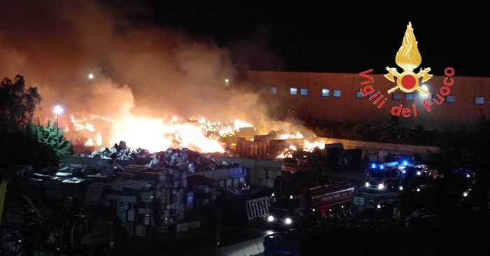 I vigili del fuoco di Reggio Calabria sono impegnati da 18 ore nello spegnimento di un incendio divampato nel piazzale di una ditta di stoccaggio e smaltimento di rifiuti ingombranti Raee (rifiuti di apparecchiature elettriche ed elettroniche) e materiali in plastica di vario genere, a Campo Calabro. Il rogo è divampato ieri dopo le 14 ed ha interessato numerosi cumuli di rifiuti posti all’esterno dei capannoni. Disagi sono stati provocati dal fumo denso e acre sviluppatosi dalla combustione ma non sono segnalati danni a persone. Le operazioni di spegnimento sono andate avanti per tutta la notte, complicate dal forte vento che ha alimentato le fiamme. Adesso sono in corso le operazioni di smassamento che proseguiranno sino alla completa estinzione dell’incendio.