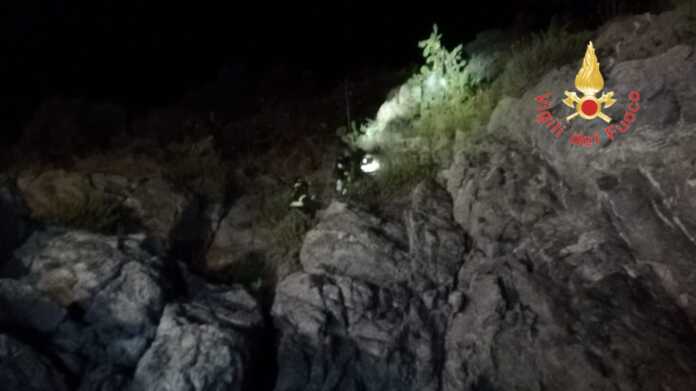 Intervento dei vigili del fuoco con unità specialista SAF (Speleo Alpino Fluviale) è valso a raggiungere il malcapitato che veniva assicurato con imbracatura di sicurezza e riportato con manovre di tipo speleo sulla spiaggia.