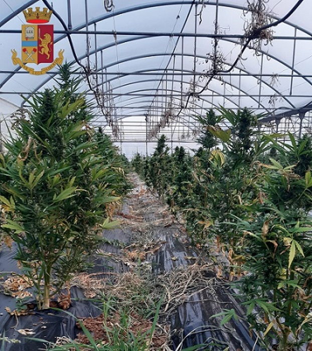 Una piantagione di canapa indiana, con circa 700 fusti di un’altezza che va da 50 a 120 centimetri, è stata scoperta nelle campagne di Isola Capo Rizzuto dagli agenti della Squadra mobile di Crotone che hanno arrestato e posto ai domiciliari tre persone tra cui il titolare di un’azienda agricola con l’accusa di coltivazione e detenzione di sostanze stupefacenti ai fini di spaccio. La piantagione, coltivata all’interno di una serra riconducibile all’azienda agricola ubicata in località San Fantino Agro, era custodita da una coppia di cittadini rumeni che abitavano stabilmente in casa all’interno della proprietà. All’interno dell’area, oltre ad un sistema di irrigazione, sono stati trovati diversi utensili utilizzati per la coltivazione e la lavorazione dello stupefacente. Le persone arrestate sono il titolare dell’azienda agricola e la coppia straniera. La vendita al dettaglio dello stupefacente sequestrato, secondo una prima stima, avrebbe fruttato oltre 400 mila euro.