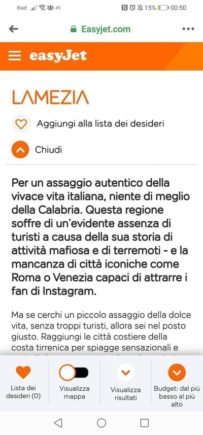 “Per un assaggio autentico della vivace vita italiana, niente di meglio della Calabria. Questa regione soffre di un’evidente assenza di turisti a causa della sua storia di attività mafiosa e di terremoti – e la mancanza di città iconiche come Roma e Venezia capaci di attrarre fan di Instagram”. Sembra una fake news o un trafiletto tirato fuori da qualche becera rivista razzista di cattivo gusto, ma non è così. E’ quanto riporta il sito della compagnia aerea EasyJet nella sezione “Ispirami”, proseguendo poi con “se cerchi un piccolo assaggio della dolce vita, senza troppi turisti, allora sei nel posto giusto. Raggiungi le città costiere della costa tirrenica per spiagge sensazionali e mai affollate. Arrampicati fino alla città di montagna di Morano Calabro per panorami mozzafiato e case bizzarre costruite su cime, che dovrai vedere per credere. Potrai essere tra i pochi turisti a conoscere e apprezzare veramente i tre spettacolari parchi nazionali di questa regione”.