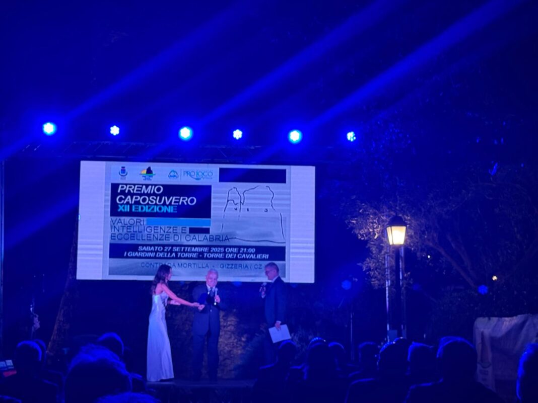 La pioggia, peraltro annunciata dalle previsioni meteo, stava per rovinare la festa. Qualche goccia in apertura, poi tutto è filato liscio per la dodicesima edizione del premio Caposuvero. Ideata da Giuseppina Fragale, Presidente della Proloco Gizzeria, la manifestazione si è pregiata della presenza di autorevoli uomini (e donne) dello Stato, imprenditori capaci, artisti di valore. Sul palco a presentare Salvatore Audia, direttore dell’emittente Esperia TV, aiutato dalla giovanissima Giovanna Cerra.