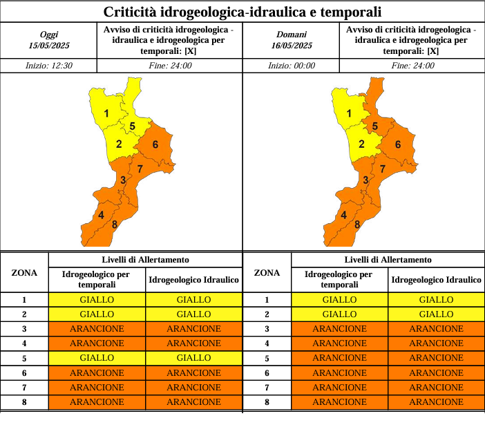 È stata elevata dal livello giallo a quello arancione già da oggi, su gran parte del territorio regionale e, in particolare su tutta la fascia ionica, l’allerta della Protezione civile calabrese per le condizioni meteorologiche avverse che potrebbero causare disagi e situazioni di potenziale pericolo.