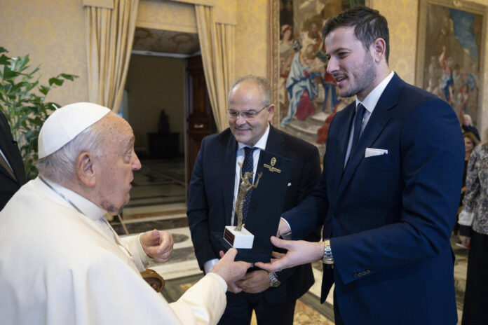 Angeli e Demoni. Sul palco il premio oscar si è alternato con Mons. Frisina, che ha diretto la Nova Opera Orchestra e il Coro della Diocesi di Roma. La presenza della violoncellista Tina Guo, candidata ai Grammy e Dario Vero hanno poi arricchito ulteriormente la serata, consolidando il concerto come un’esperienza artistica e spirituale di altissimo livello. A presentare il concerto è stata l’attrice Serena Autieri, che si è anche esibita, come solista, in due brani del Maestro Frisina. “Partecipare al “Concerto con i Poveri” è sempre un’esperienza unica, un’occasione per unire arte, solidarietà e spiritualità in un solo gesto – ha commentato Michele Affidato – La creazione realizzata quest’anno è un omaggio ai valori profondi che questo evento rappresenta bellezza, inclusione e carità – ha poi aggiunto il maestro orafo – Consegnare quest’opera a Papa Francesco e a tutti gli artisti è stato un onore immenso, perché attraverso di essa abbiamo avuto modo di trasmettere un messaggio di speranza e unione universale”.