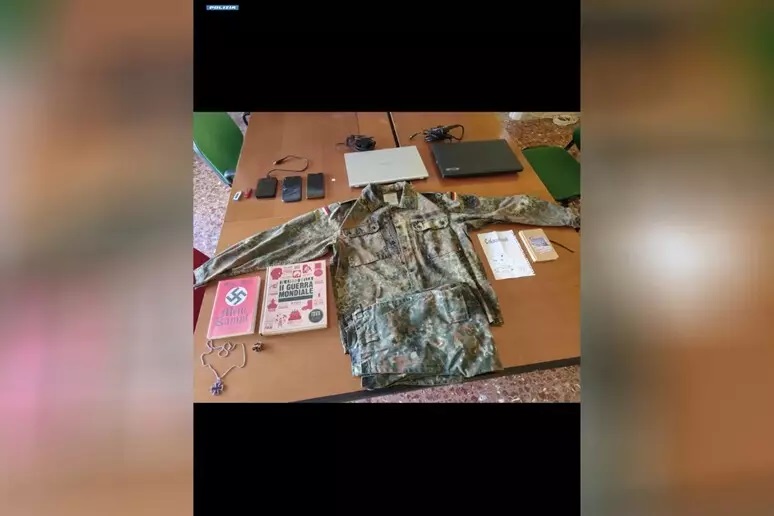 Nella circostanza, il minore aveva consegnato di sua spontanea volontà, oltre a una bandiera con la croce celtica, un fucile a pompa giocattolo, privo di tappo rosso, con impresse numerose scritte e simboli riconducibili alla galassia suprematista, nonché i nomi dei noti attentatori.