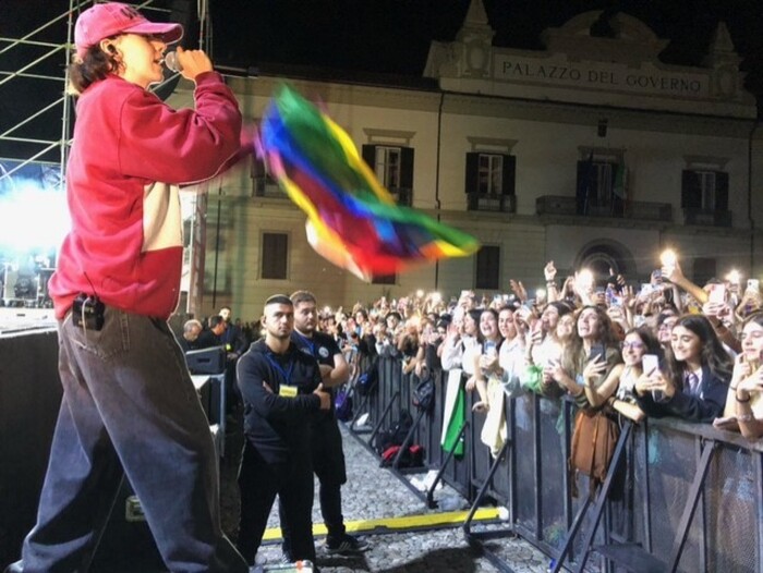 Uno scricciolo calato in vestiti large che canta l’amore oltre i canoni prestabiliti dalla società. È Ariete, al secolo Arianna Del Giaccio. Una ragazza di appena 20 anni che con i suoi testi aiuta i coetanei ad essere se stessi, a credere nell’amore al di là di ogni “giudizio”. È considerata tra le cantautrici italiane più rivoluzionarie del nuovo millennio perché è riuscita a stravolgere i canoni del pop femminile. Sul palco in piazza XV Marzo a Cosenza, unica tappa calabrese del suo “Specchio tour”, la cantautrice romana ha dato voce a tre ragazze, tre storie struggenti ma piene di realtà. In piazza centinaia di fan in attesa dal pomeriggio, hanno sfidato la pioggia, per poi cantare a squarciagola i testi della cantautrice. Ariete, al centro della scena indie italiana, arriva per la prima volta nella città dei bruzi dopo un anno intenso di piena consacrazione musicale attraverso un album in cui la Generazione Z si riconosce e rispecchia: un viaggio introspettivo in musica semplice e schietto. Le canzoni della giovane Ariete hanno la sincerità propria dei ragazzi e la capacità di ricordare ai boomer che l’amore è amore, e nessuno ha il diritto di rinchiuderlo in un’etichetta.