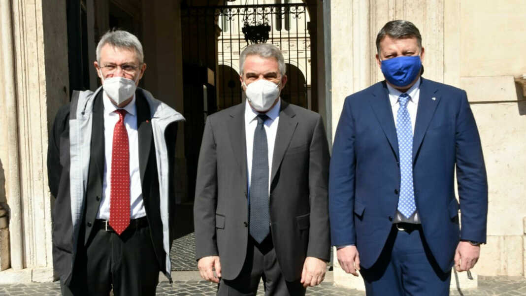 Nella sede romana della Regione Calabria, il presidente Roberto Occhiuto ha incontrato i segretari generali nazionali di Cgil, Cisl e Uil, Maurizio Landini, Luigi Sbarra e Pierpaolo Bombardieri, insieme ai segretari regionali Angelo Sposato, Tonino Russo e Santo Biondo. “Sin dall’inizio del mio mandato, ma anche durante la campagna elettorale – ha detto il Governatore – ho fatto del dialogo e del confronto costante con le associazioni di categoria, con i corpi intermedi e con i sindacati, un metodo di lavoro che mi ha accompagnato in questi primi mesi di governo. Sono molto soddisfatto del rapporto che si è venuto a creare con i segretari generali di Cgil, Cisl e Uil della Calabria, che ho già incontrato in diverse occasioni e con i quali ho condiviso provvedimenti e iniziative. Occhiuto ha deciso di allargare il raggio d’azione del confronto, volendo coinvolgere i segretari generali nazionali di Cgil, Cisl e Uil su alcune tematiche. “Con Landini, Sbarra e Bombardieri ha discusso di infrastrutture che lo Stato deve fare sulla Calabria, in modo particolare sulla strada statale ionica, e del porto di Gioia Tauro, con annessa Zona economica speciale. Un’opportunità per il nostro territorio e per l’intero Paese. Occhiuto si è augurato di avere al suo fianco su questi temi il sindacato regionale e nazionale.