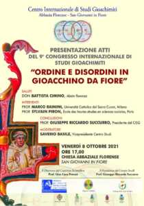 La pubblicazione degli Atti è un avvenimento particolarmente importante per il Centro Internazionale di Studi Gioachimiti. Conclude un percorso quinquennale ed affida le relazioni degli esperti alla memoria degli studiosi e del vasto pubblico. Venerdì 8 ottobre, alle ore 17, nella Chiesa abbaziale florense di San Giovanni in Fiore, il Centro Internazionale di Studi Gioachimiti presenterà gli Atti del 9° Congresso, “Ordine e disordini in Gioacchino da Fiore”. Interverranno il prof. Sylvan Piron, (Ècole des hautes ètudes en sciences sociales, Paris), il prof. Marco Rainini (Università Cattolica del Sacro Cuore, Milano) e il prof. Giuseppe Riccardo Succurro (Presidente del Centro Studi). I saluti saranno porti da don Battista Cimino (Abate florense) con l’evento che sarà moderato da Saverio Basile, direttore de Il Nuovo Corriere della Sila e Vicepresidente del Centro.