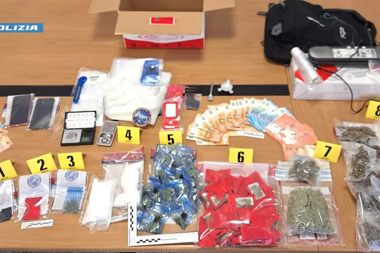 Nel corso della perquisizione sono stati sequestrati oltre 400 grammi di cocaina, più di un chilogrammo di marijuana, materiale per il confezionamento, strumenti per la pesatura di precisione e circa 1.700 euro in contanti.