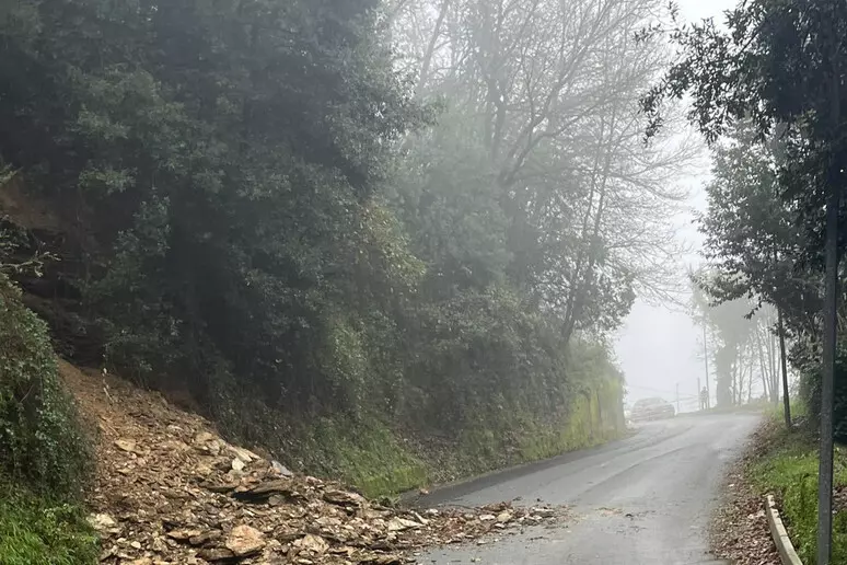 I detriti hanno invaso la strada che collega il centro collinare e la costa tirrenica, staccandosi da un costone roccioso a causa delle forti piogge.