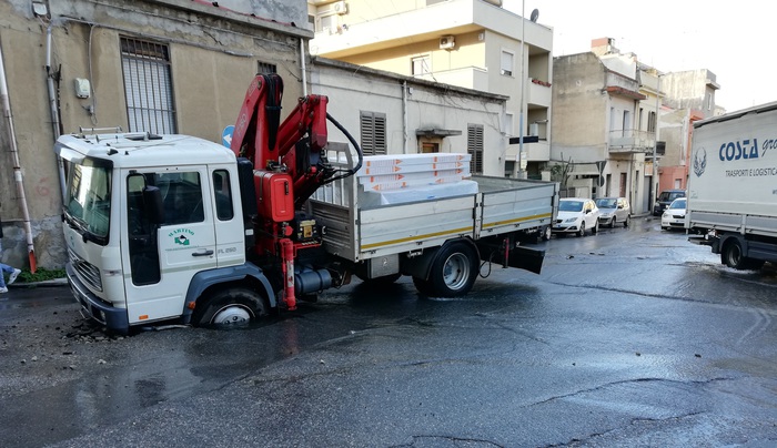Una voragine provocata dallo sfondamento dello strato di asfalto da parte di un camion in transito, che è sprofondato per circa mezzo metro, ha provocato un’ingente perdita d’acqua a Reggio Calabria. L’acqua fuoriuscita ha allagato l’incrocio tra via Sbarre Centrali e Viale Europa, con gravi disagi per il traffico e per i pedoni in corrispondenza della rotatoria davanti al Comando Provinciale dei Vigili del Fuoco di Reggio Calabria. La perdita d’acqua infatti ha eroso il terreno che al passaggio del grosso mezzo ha ceduto per almeno mezzo metro. Il camion è rimasto bloccato in attesa dell’intervento della Polizia locale e dei vigili del fuoco. Nessuna conseguenza per le persone a bordo del mezzo ma la perdurante perdita d’acqua che ha messo in tilt l’erogazione idrica nelle abitazioni della zona. Tecnici al lavoro per ripristinare il servizio.