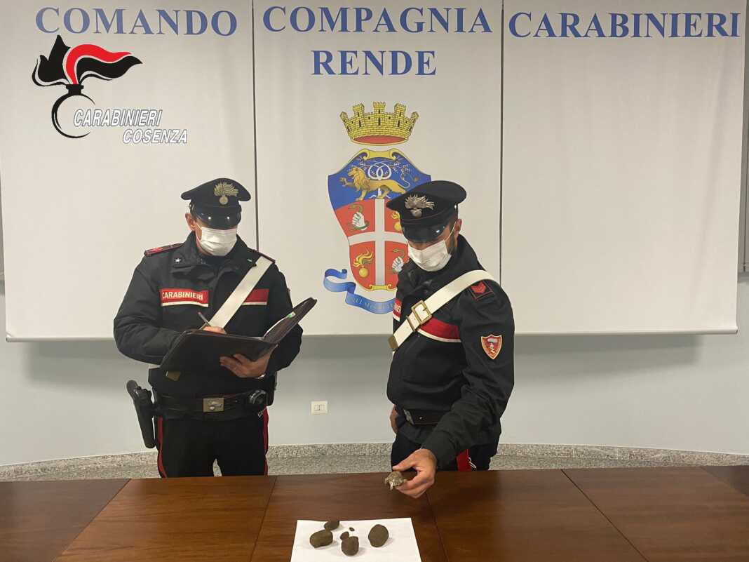 Nel corso della serata di ieri, nell’ambito dei servizi di prevenzione predisposti dalla Compagnia Carabinieri di Rende finalizzati al controllo del territorio e alla repressione dei fenomeni criminosi, i militari del Nucleo Operativo e Radiomobile hanno tratto in arresto per il reato di “detenzione ai fini di spaccio di sostanze stupefacenti” un 22enne di Cosenza. I militari notavano un’autovettura in sosta in un parcheggio nei pressi del centro commerciale “Metropolis” con all’interno due ragazzi con fare sospetto. Pertanto decidevano di eseguire un controllo e, durante lo stesso, mentre verificavano i documenti di guida, avvertivano sin da subito un forte odore di sostanza stupefacente. I ragazzi, nel tentativo di eludere un’ispezione più accurata, riferivano di aver appena consumato uno spinello, ma ciò non convinceva gli operanti, i quali, effettuata una perquisizione al veicolo, rinvenivano nel vano porta oggetti, una busta di carta contenente 188 grammi di “Hashish”, posto sotto sequestro. Uno dei due giovani a quel punto dichiarava che quanto rinvenuto era di sua proprietà, pertanto veniva dichiarato in stato di arresto e su disposizione del magistrato di turno presso la Procura della Repubblica di Cosenza, sottoposto agli arresti domiciliari presso la propria abitazione. I Carabinieri della Compagnia di Rende hanno proseguito l’attenta azione di controllo del territorio mettendo in campo, nell’intero week end, su indicazione del Comando Provinciale Carabinieri di Cosenza, servizi finalizzati alla prevenzione e repressione dei reati in genere, nonché alla verifica del rispetto del Codice della Strada, che hanno consentito di: Deferire in stato di libertà 4 persone per “Guida sotto l’effetto di sostanze stupefacenti e rifiuto di sottoporsi ad accertamento etilometrico” che ha comportato il sequestro dei rispettivi veicoli e documenti di guida;  segnalare alla Prefettura di Cosenza, quali “assuntori di sostanze stupefacenti” 5 persone le quali, a seguito di perquisizione personale, sono state sorprese in possesso complessivamente di 4,5 grammi di sostanza stupefacente del tipo “marijuana” sottoposti a sequestro; Denunciare per il reato di “evasione” un 60enne ed un 30enne di Rende (CS) poiché, nonostante in regime degli arresti domiciliari, durante i previsti controlli volti a verificare il rispetto degli obblighi cui sono sottoposti, non sono stati trovati all’interno delle proprie abitazione in violazione delle misure predette;  controllare circa 80 persone e 60 veicoli, elevando 12 contravvenzioni al codice della strada. Proseguirà nei prossimi giorni, la campagna di intensificazione dei controlli disposta dalla Compagnia Carabinieri di Rende per un deciso richiamo alla responsabilità e al rispetto delle regole adottate a tutela dell’incolumità e della salute pubblica e volti ad assicurare e prevenire ogni fenomeno di illegalità.