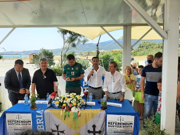 “Sono strafelice del contributo che Nino e la Lega stanno dando qui per il futuro dei calabresi. E non ci basta solo rivincere le elezioni regionali di ottobre, le vogliamo stravincere con la Lega forza trainante del cambiamento, del rinnovamento, del futuro, del lavoro e dei giovani”. Lo ha detto Matteo Salvini a Gizzeria per partecipare ad un’iniziativa della Lega calabrese. “I pochi giorni di vacanza che avrò questa estate a cavallo di Ferragosto – ha poi aggiunto Salvini – con la mia compagna sarò ben felice di passarli in Calabria”. All’incontro, svoltosi in un lido, c’erano il deputato Domenico Furgiuele, il presidente della Regione Calabria Nino Spirlì, i consiglieri regionali Tilde Minasi, Pietro Molinaro e Pietro Raso, il coordinatore regionale Francesco Giacomo Saccomanno e il vice Cataldo Calabretta. Piccolo bagno di folla per il leader della Lega che successivamente si è spostato nel gazebo per la raccolta delle firme a sostegno dei referendum sulla giustizia allestito sul lungomare della cittadina. Parlando ad un gruppo di sostenitori che hanno sfidato il sole battente Salvini, dopo avere sottolineato l’importanza della raccolta delle sottoscrizioni ha invitato a sostenere la petizione recandosi a firmare anche nei comuni. Prima di spostarsi a Cosenza, Salvini si è dedicato, come ormai consuetudine, ai selfie con i presenti.