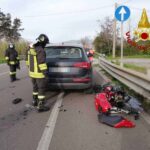 Un uomo di 41 anni è morto in un incidente stradale avvenuto oggi sulla strada statale 18, nella zona di San Pietro Lametino, nel Catanzarese. La vittima era alla guida di una moto Ducati che, per cause in corso di accertamento, si è scontrata frontalmente con una Citroen C5 e poi con una Audi Q5. Nel violento impatto la motocicletta si è spezzata in più parti e il conducente è morto sul colpo. La strada statale e’ rimasta chiusa in entrambe le direzioni fino al termine delle operazioni di messa in sicurezza e dei rilievi, affidati ai carabinieri e alla polizia locale di Lamezia Terme. Sul posto sono intervenuti i vigili del fuoco del distaccamento di Lamezia Terme e il personale Anas per la sicurezza, oltre al medico legale per la constatazione del decesso. I passeggeri delle due autovetture sono stati soccorsi dalle ambulanze del 118 e trasportati in ospedale per l’evidente stato di shock.