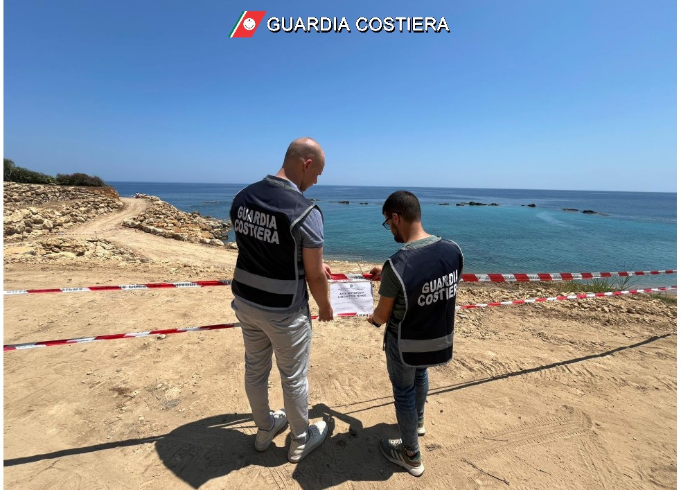 In particolare i lavori accertati dai militari, sono consistiti in movimentazione del terreno, riprofilatura e rimodellamento del versante e della scarpata oltre al posizionamento di numerosi massi in pietra arenaria e realizzazione di una strada sterrata di accesso al mare.