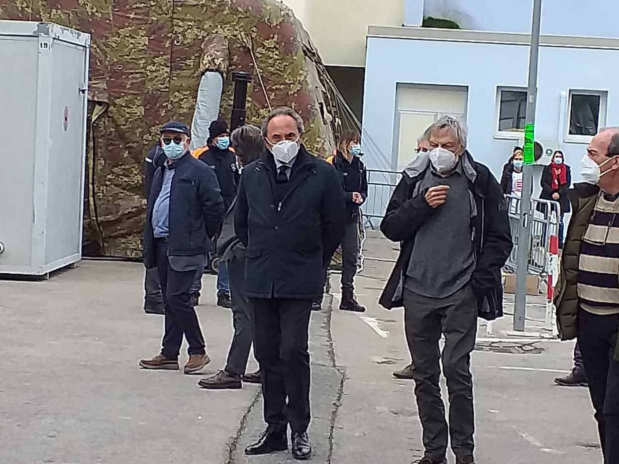 È durato circa mezz’ora il sopralluogo che Gino Strada ha svolto all’ospedale da campo montato davanti al nosocomio di Crotone per ospitare i pazienti Covid. Il fondatore di Emergency, associazione che gestirà l’ospedale tendato da 20 posti letto montato dalla Protezione civile e dall’Esercito italiano, ha svolto una verifica della struttura insieme con il direttore generale facente funzione dell’Azienda sanitaria provinciale di Crotone, Francesco Masciari, e al direttore sanitario dell’ospedale di Crotone, Lucio Cosentino. Strada ha anche parlato a lungo con il responsabile del reparto Covid, Gaetano Mauro e con il caposala Giuseppe Diano. Nel pomeriggio Gino Strada terrà una conferenza stampa in videocollegamento.