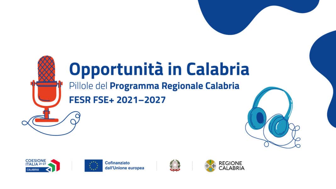 È online su Spotify la serie podcast “Opportunità in Calabria: Pillole del PR Calabria FESR FSE+ 21–27”, realizzata in collaborazione con Fincalabra S.p.A, nell’ambito della campagna di comunicazione del Programma Regionale Calabria FESR FSE+ 2021–2027.