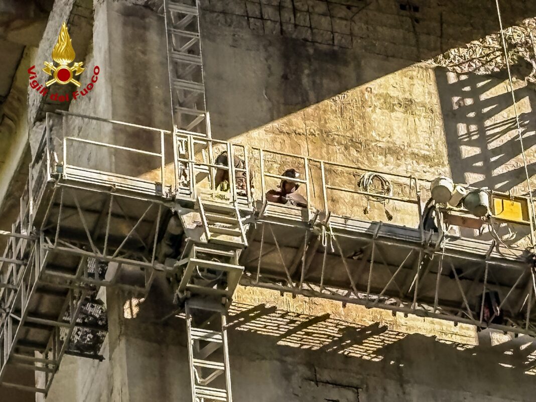 I vigili del fuoco, con l’impiego delle tecniche Saf, hanno raggiunto i lavoratori bloccati, li hanno messi in sicurezza mediante imbracature speleo e li hanno guidati nella discesa controllata fino a un’area sicura “portando così a termine con successo l’intervento di recupero.